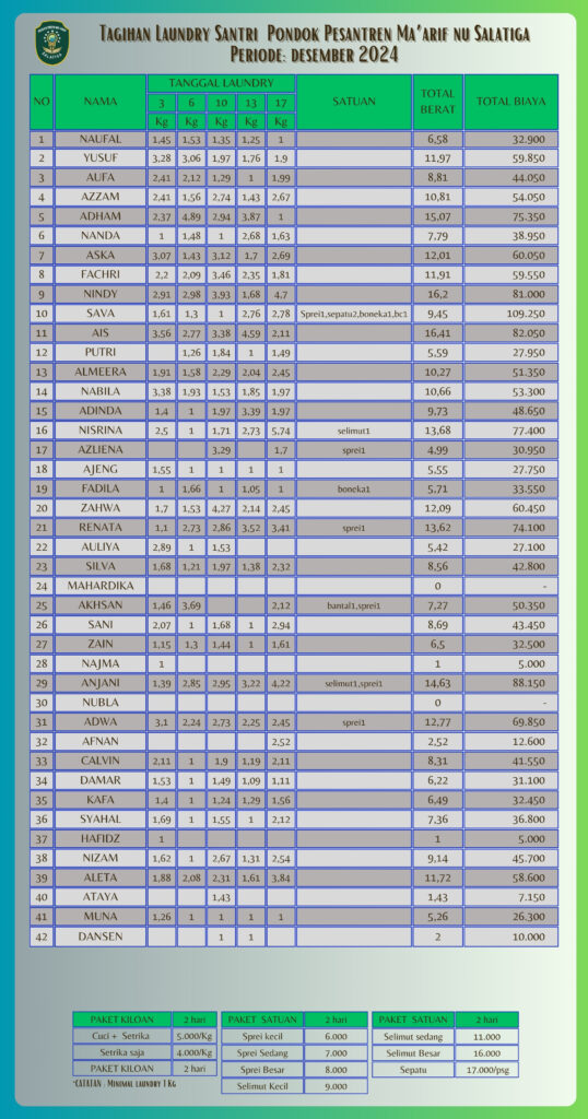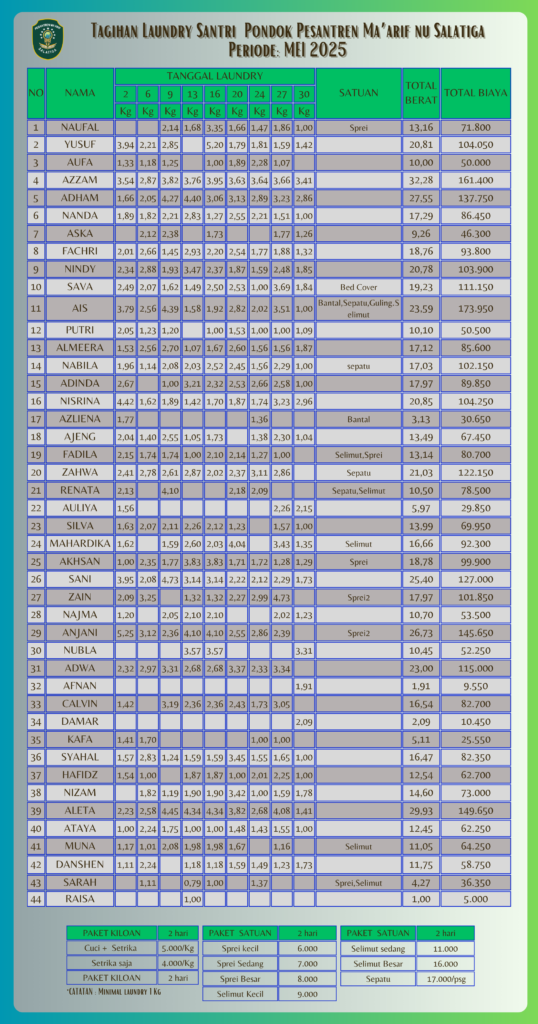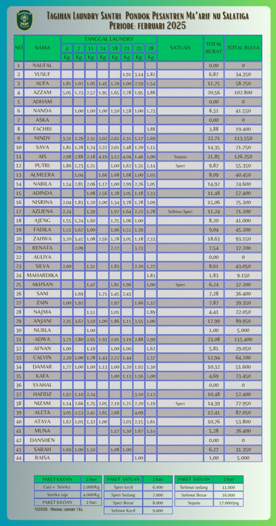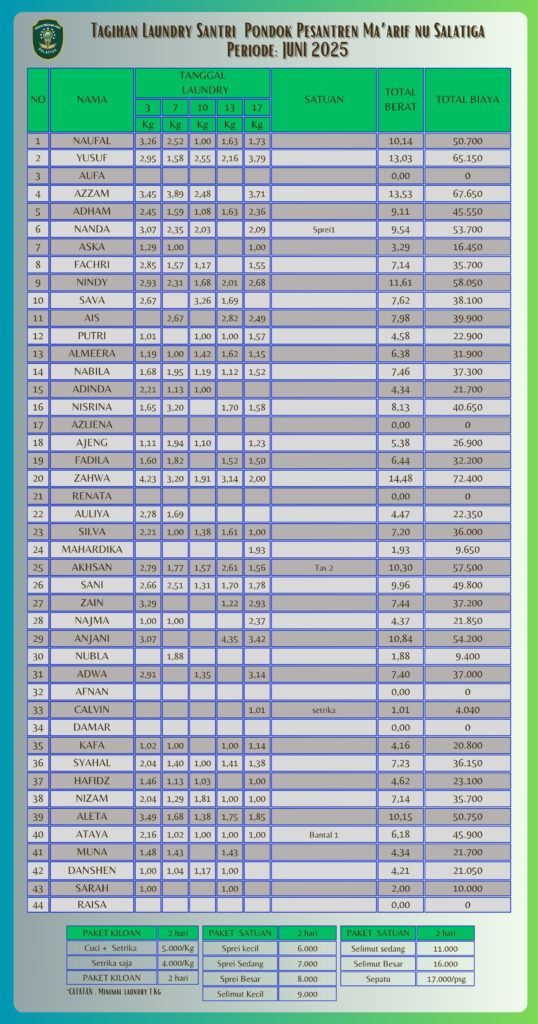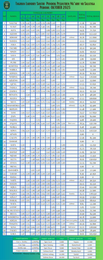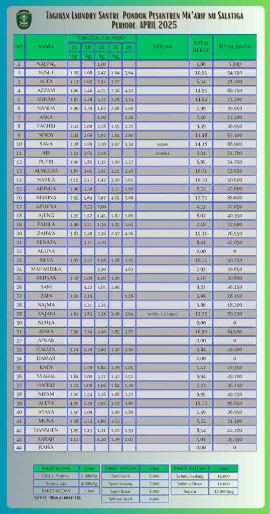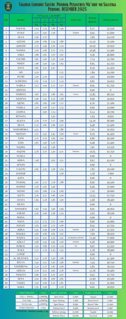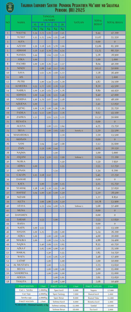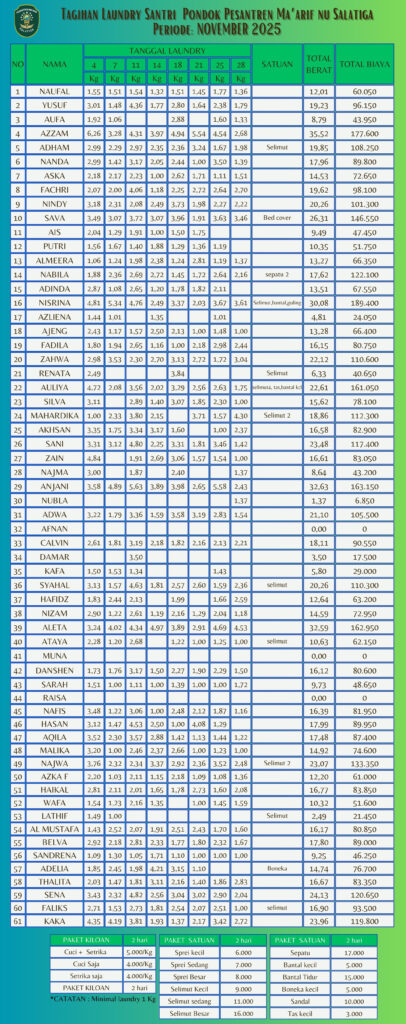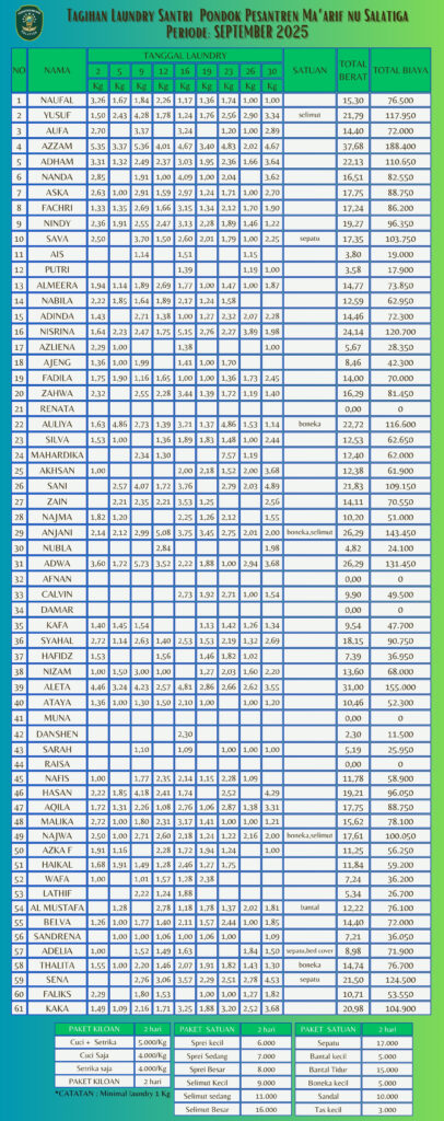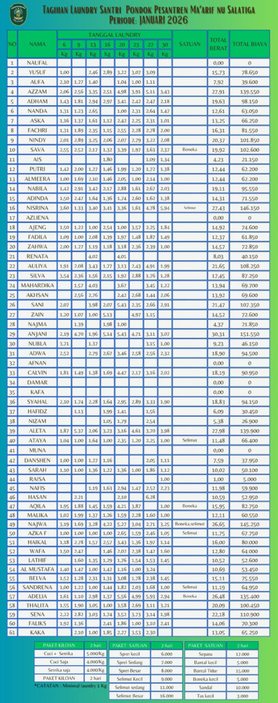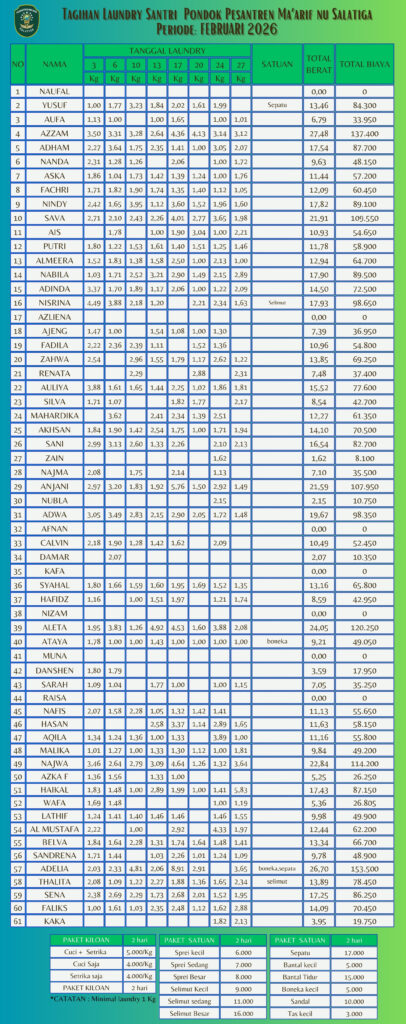 Informasi Tagihan Laundry Santri PP Ma'arif NU Salatiga